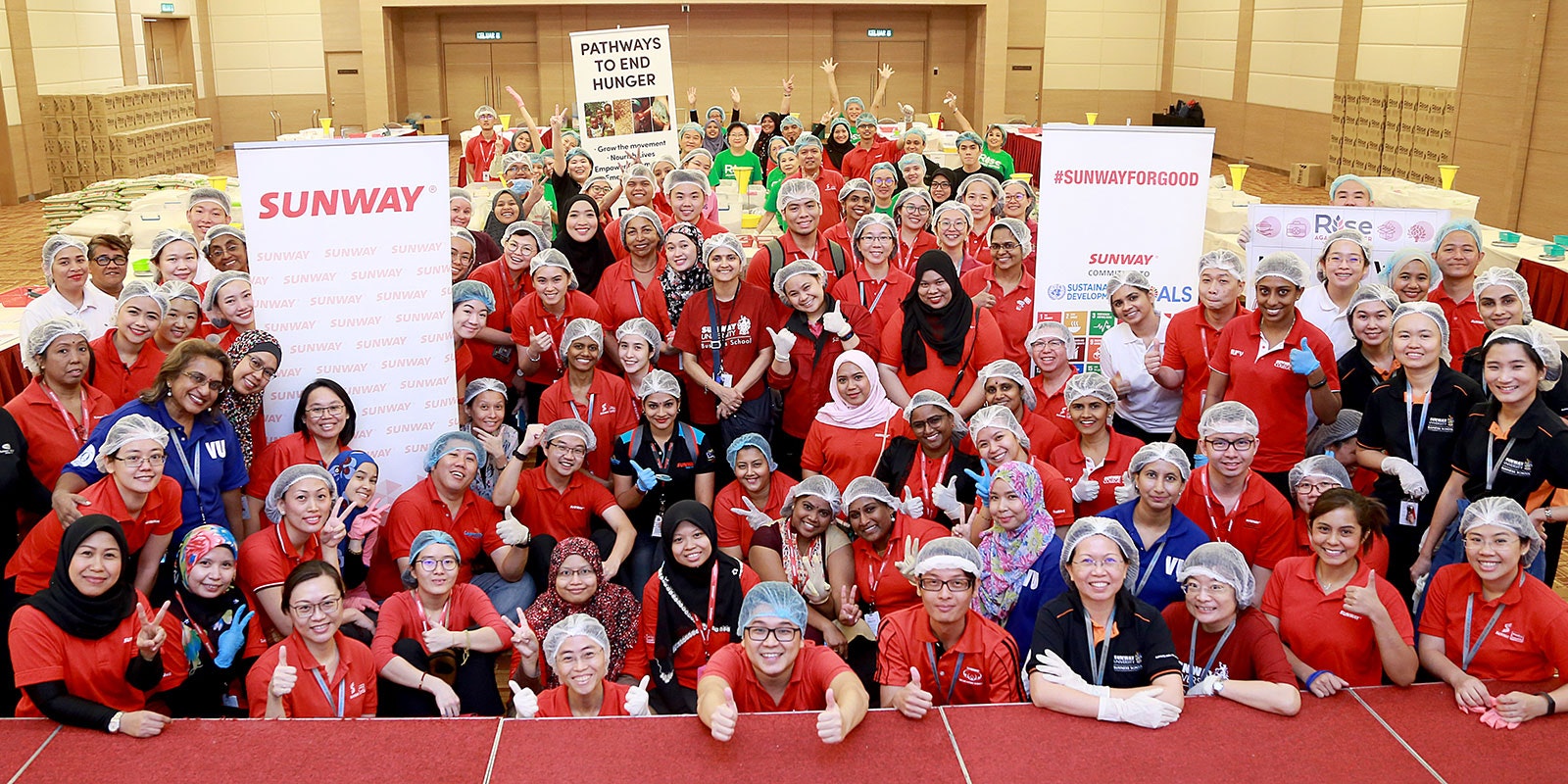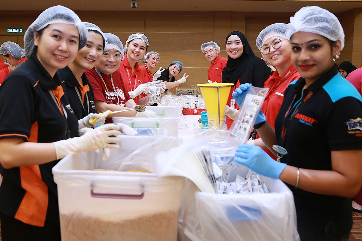 Sunway, a corporate partnership of Rise Against Hunger Singapore, has packaged millions of meals (and counting) through its Sunway for Good program by hosting an annual meal packathon. This annual event brings together Sunway employees and student volunteers from various Sunway educational institutions to package nourishing meals that fuel the hopes and dreams of people facing food insecurity across the globe. Click here to see Sunway’s incredible impact!